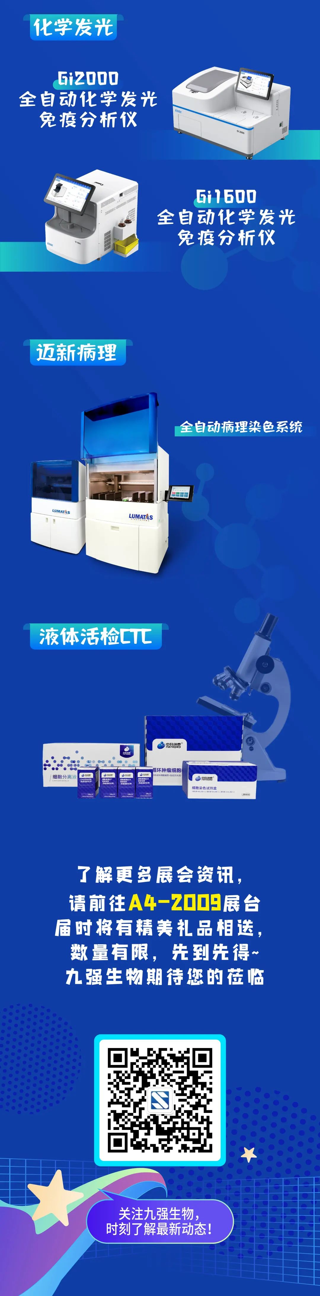 南宫体育(中国)将携六大产品线——“生化、血凝、血型、化学发光、病理、液体活检CTC”亮相本次展会,诚邀各位莅临参观指导。