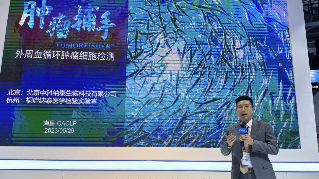 答:我们的产品肿瘤捕手,英文叫做TUMORFISHER®,顾名思义,就是在河流里数以十亿的草鱼里抓一条黑鱼,这就是我们产品名称的由来。最近它也进入了抗癌协会液体活检指南CTC篇,也得到了权威专家和主流专家的认可。我们这个技术最大的优点就是灵敏度特别高,通过纳米磁珠技术,我们可以针对上皮细胞上的标志物进行捕获,用磁力把肿瘤细胞给抓住,不会误抓其他的血细胞,用这种技术我们不仅可以抓到CTC,而且可以对CTC进行一些分子分析。