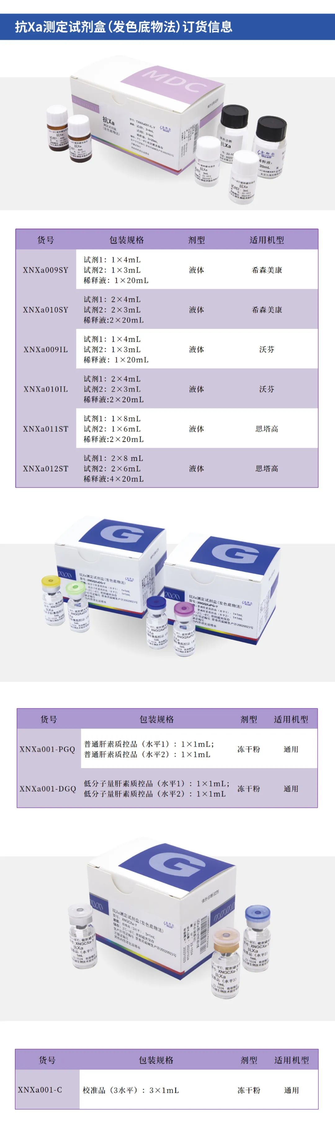 抗Xa活性试验可用于UFH、LMWH等多种药物抗凝强度/血药浓度的测定。
