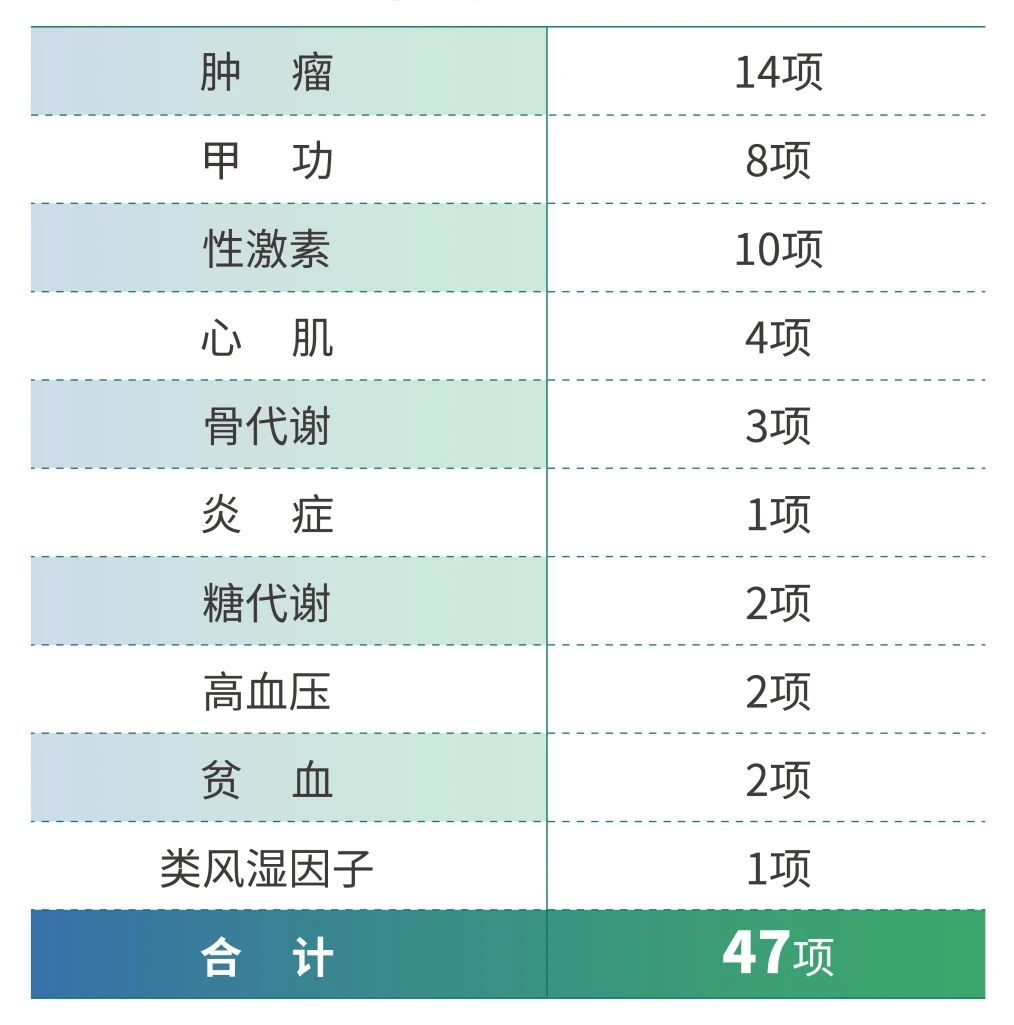 本次获证产品包括肿瘤标志物、甲状腺功能标志物、性激素标志物、心肌标志物、骨代谢标志物、炎症标志物、糖代谢标志物等,全线高质量产品为疾病诊保驾护航。