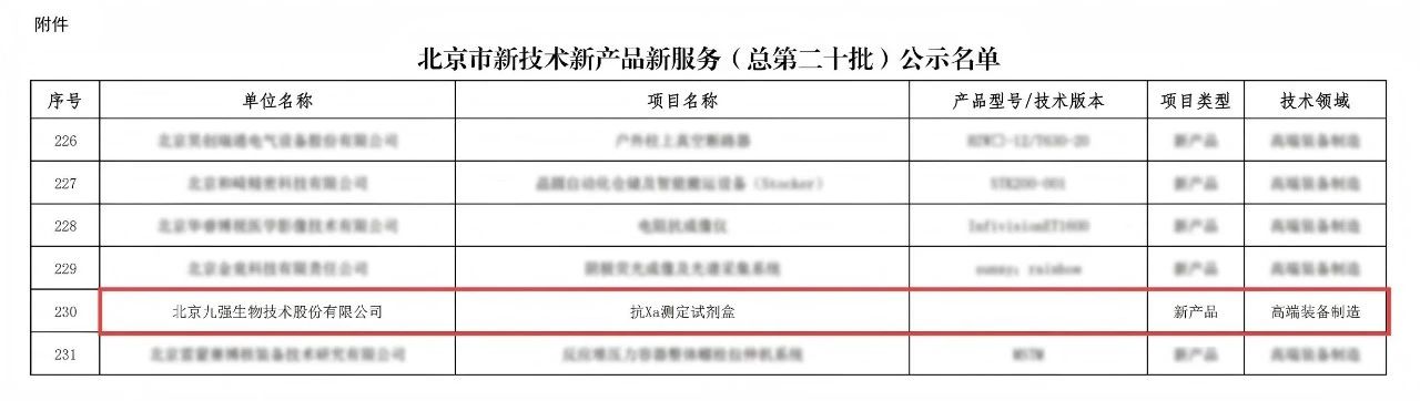 喜讯 | 南宫体育(中国)抗Xa入选北京市新技术新产品新服务名单