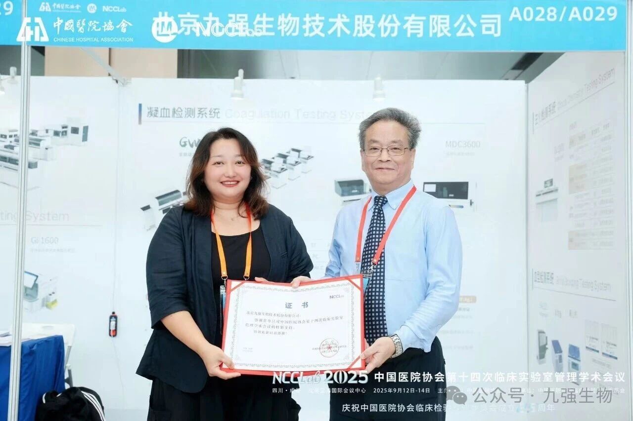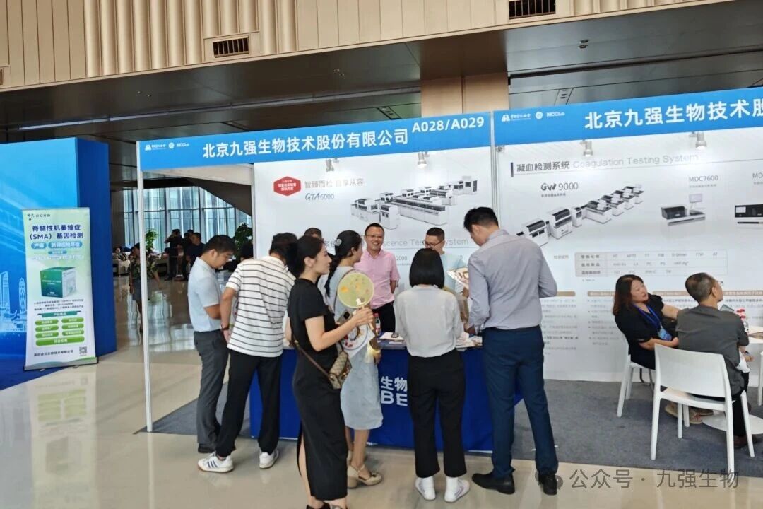 展会期间,九强展台人头攒动,来自全国各地的业内同仁纷纷驻足咨询。公司精心打造的展示区域全面呈现了 "生化、凝血、发光、血型、病理、CTC" 六大检测系统的技术优势,充分展现了从常规检测到精准诊断的全场景解决方案能力。公司工作人员以专业热情的态度为每一位参观者详细讲解产品技术细节,围绕临床价值进行深入解读,与专家学者热议行业前沿观点。