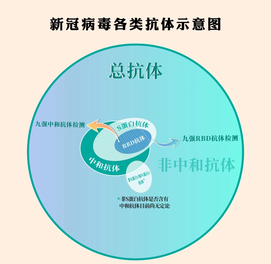 接种疫苗后或者自然感染新冠病毒后,机体产生的针对新冠病毒的所有抗体,其中既包含了中和抗体,也包含了非中和抗体;既包含了IgG,也包含IgM和IgA等;既包含了针对S蛋白(或RBD)的抗体,也包含针对N蛋白或其它蛋白的抗体。但是目前,能针对以上所有抗体进行检测的试剂盒几乎没有。大部分检测试剂盒只能检测针对S蛋白或者N蛋白的抗体。因此会漏检针对非S蛋白或者非N蛋白的抗体。