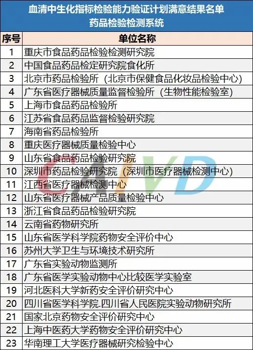 按照《国家药监局综合司关于印发2020年药品检验能力验证计划的通知》(药监综科外〔2020〕86号)规定,现公布药品监管系统2020年检验能力验证结果为“满意”的机构名单,其中涉及检验医学的名单如下: