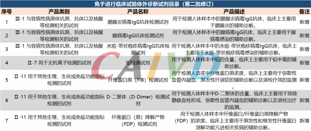 新增7项体外诊断项目进入免临床试验医疗器械目录(第二批修订)