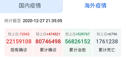 12月26日0—24时,31个省(自治区、直辖市)和新疆生产建设兵团报告新增确诊病例22例,其中境外输入病例10例(上海4例,北京3例,浙江2例,安徽1例),本土病例12例(辽宁7例,北京5例);无新增死亡病例;无新增疑似病例。